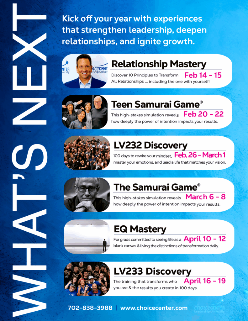 Since 1998, ChoiceCenter has offered adult and teen EQ development and essential leadership courses using experiential learning to elevate Emotional Intelligence (EQ) – the single biggest factor in determining success in life.