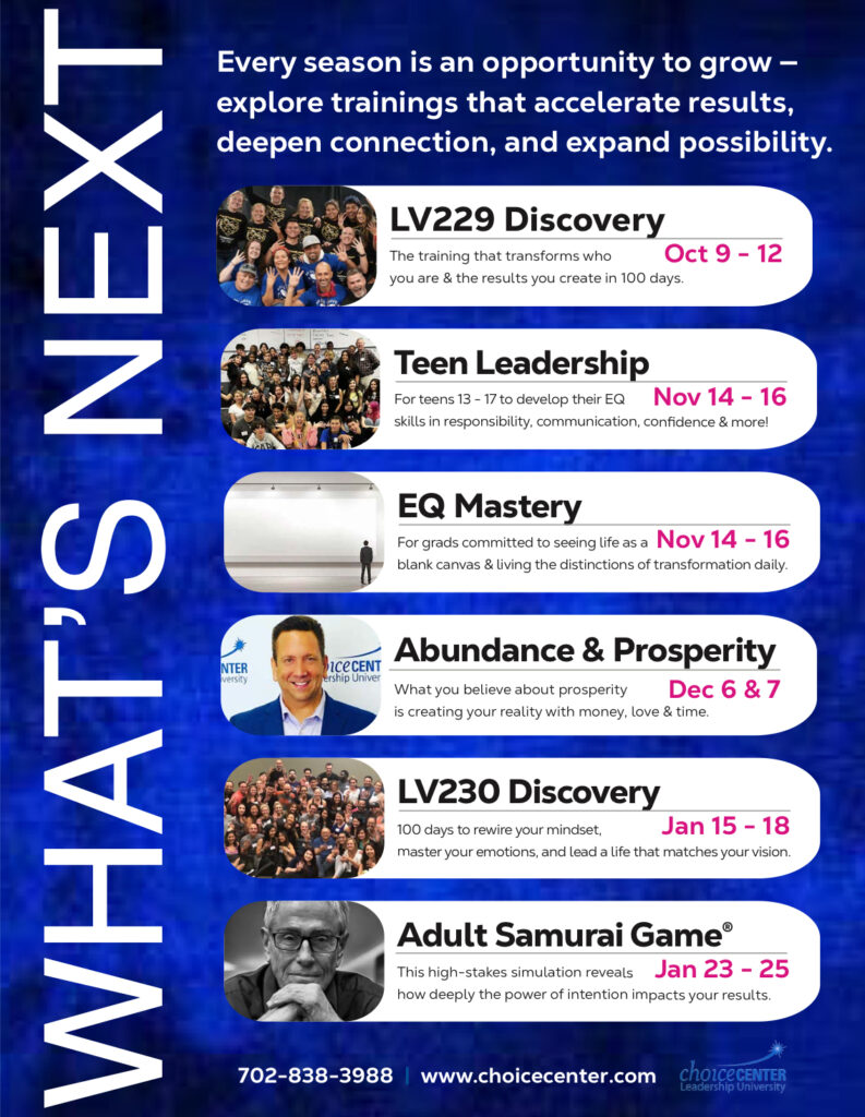 Since 1998, ChoiceCenter has offered adult and teen EQ development and essential leadership courses using experiential learning to elevate Emotional Intelligence (EQ) – the single biggest factor in determining success in life.