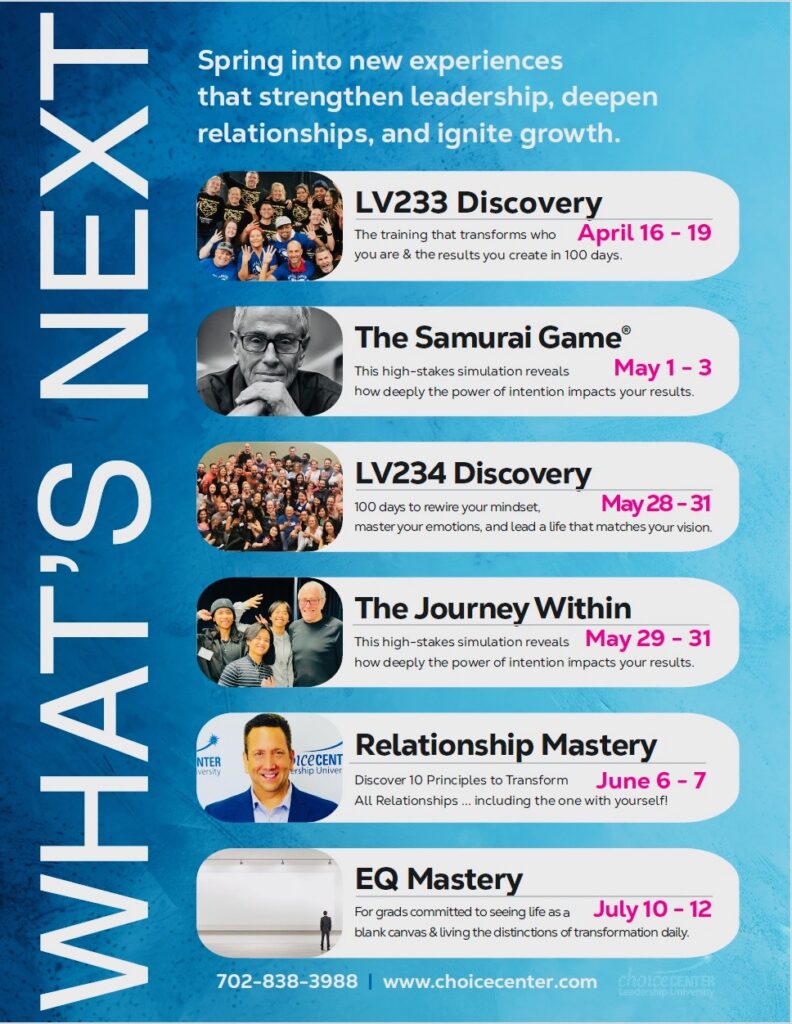 Since 1998, ChoiceCenter has offered adult and teen EQ development and essential leadership courses using experiential learning to elevate Emotional Intelligence (EQ) – the single biggest factor in determining success in life.